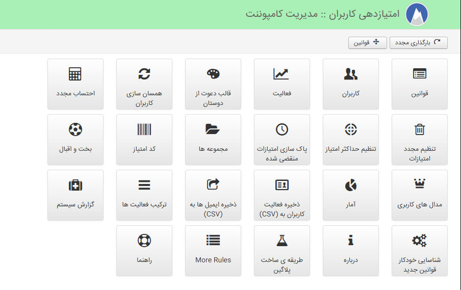 راه اندازی سرویس های امتیازدهی به کاربران جهت تشویق برای فعالیت در سایت امروزه یکی از روش های جذب کاربر میباشد. شما میتوانید با این کامپوننت محبوب برای فعالیت های کاربران خود امتیاز تعیین کرده و در ازای کسب امتیاز امکان استفاده از خدمات تجاری و محصولات سایت را بدون پرداخت وجه فراهم آورید.. این سیستم قدرتمند میتواند برای هر فعالیت کاربران از جمله ثبت نام ، خرید محصولات ، ثبت مطالب و مقاله ، دانلود و ... که در سایت شما انجام میدهد امتیاز کسب کرده و از آنها برای قسمت های دیگر سایت استفاده کند.