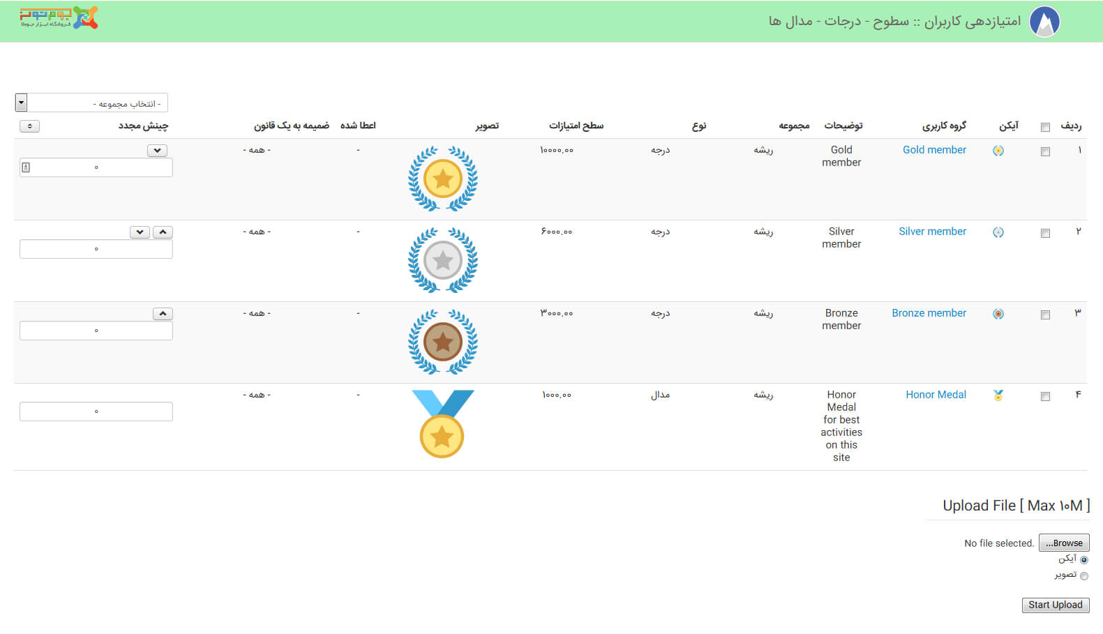 - امکان اختصاص مدال به کاربران و تعیین امتیاز برای دریافت مدال